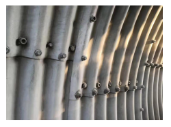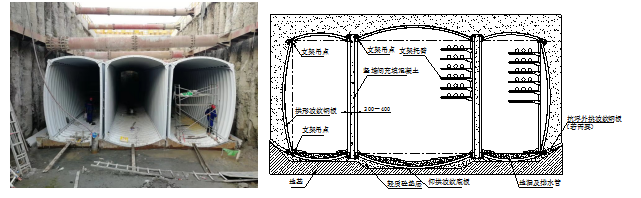 (1)、分片拼裝式波紋鋼結(jié)構,每片波紋鋼板面積只有2~3平方米,單節(jié)長度沿縱向長度只有1~1.5米,并且要求錯縫拼裝,接縫多。