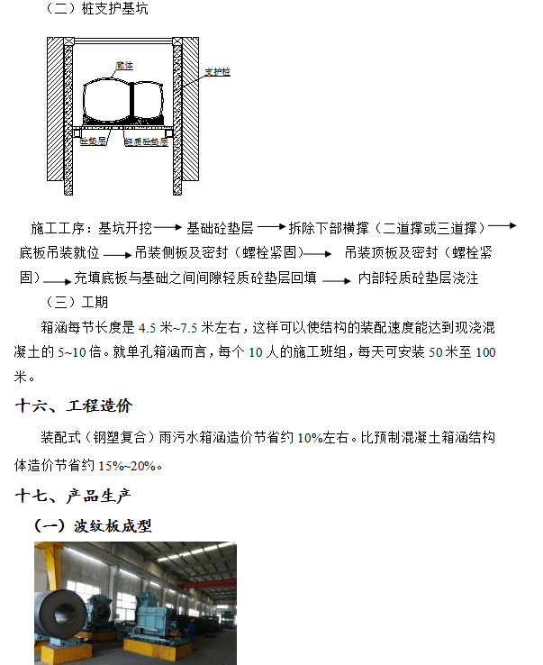 ①裝配式結(jié)構,結(jié)構體工期是現(xiàn)澆混凝土結(jié)構的三分之一至五分之一,是裝配式混凝土工期的一半,是普通的涵洞型鋼波紋管結(jié)構管廊的一半以上;